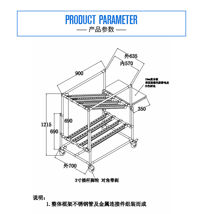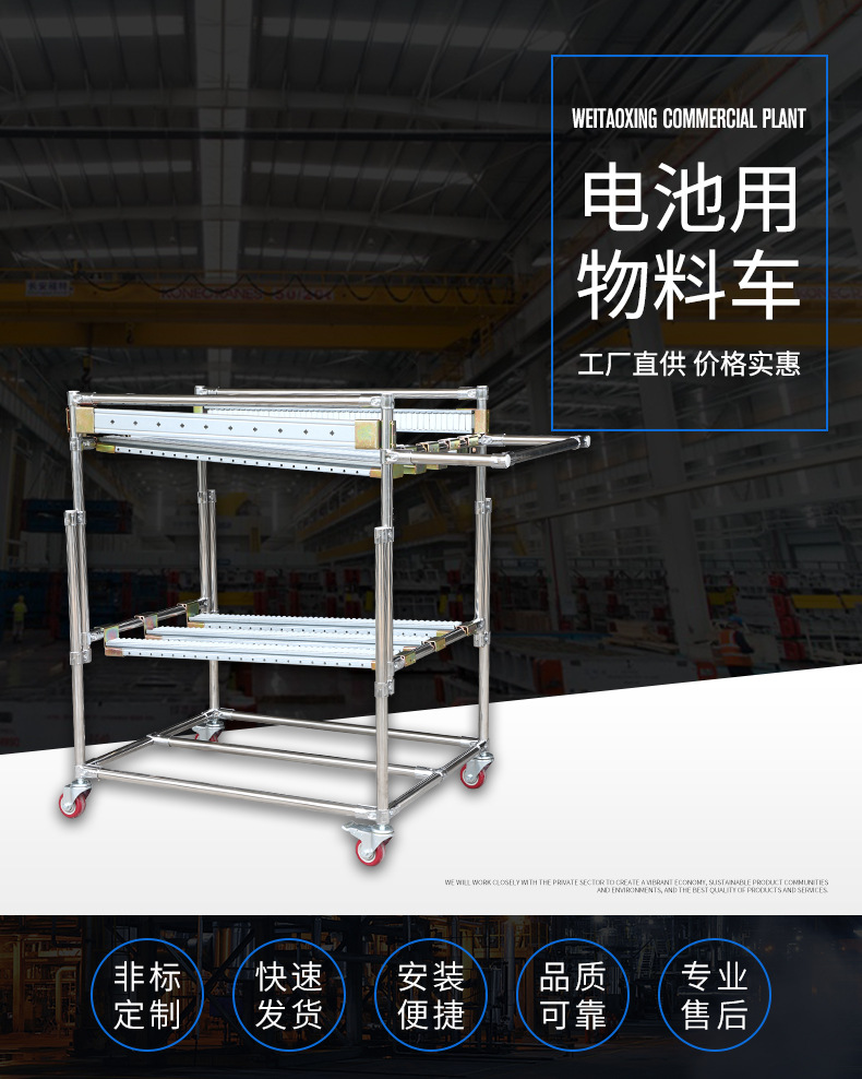 定制批發(fā)電池用物料車 3寸插桿腳輪對角帶剎不銹鋼管組裝物料車